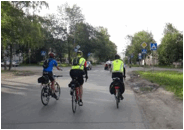 スタート(7月6日)は朝7時、宿の玄関前に女性スタッフがいてみんなのDBを集める。 いつどこでスタートが始まるのだろうと思っていると、「みんなの荷物は私がちゃんと届けるから行っていいよ。」と言う。 だんだんみんな居なくなっていくので今泉さんとみんなについて走り出す。昨日の集合場所に行くのかと思っているとそのうちスピードが上がり、 今泉「これもうスタートしてますよ。」 僕「えっ!ホントだ!」、GPSを確認する。 すると左折場所をみんな右折(南下)して行く。 今泉「これ逆に向かってますよね。」 僕らがルートの変更資料を受け取ったのが6月29日、それからまた変更があったのか? 二人で停まってしばらく待つが、僕らは最終みたいで誰も来ない。今泉さんが英語のわかるスタッフにTelするが、「ミハエルに聞いてみるね。」との返事。 みんなについて行くか、GPSを信じるか、、、。 僕はリカなのでみんなに付いていけそうもなく、どちらにせよ北上するのはわかっているのでGPSに従いとにかくPC1をめざすことに。 いつかみんなと合流する事を信じてしばらく二人だけでロシアの道を進んでいく(なんとも初っぱなからこのありさま、先が思いやられる、というよりものすごく不安に、、、。) ロシアの抜けるような空はどこまでも青く、真っ白な雲がふわふわと浮かぶ。1,2時間程すると後ろから猛スピードで先頭集団がやってきた(ここで二人はやっとホッとする)。 みんながミスルートだったのか、どこかにスタート場所があったのかは不明。どんどん追い抜かれ、結局また二人旅に。