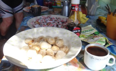 PC-10(826k)、16:33着 途中工事で片側交互通行があったが、道は良かった。急にハンドルを取られスリップしたと思ったら塗り替えた白線が乾いてなくてタイヤにべっとり。こんなことは初めて、、、。 道が悪く足を痛めたことを話していた時に、「この先もこんなデコボコ道が続くのか?」と聞くと「ああ、まだまだ続くよ。」「Why?」「It‘s Russia Ha Ha.」みんなで笑っていた。 膝の痛みに加え右のアキレス腱が痛くなる。 PC-11(901k)、22:02着 ここまで来るのにはかなりのアップダウンがあったように思うが、道は良かった。湖のそばの保養所みたいな感じだが本当の所はわからない。 食事をしているとPC-13と14が変更になったらしいが何がどう変わったのかもわからない。このへんはもうどうでもいいような気がしていたのだろう(笑)。 「次のPCで確認してみるよ。」と言って出発する。 そうそう、ここのトイレは便器ではなく、ただ穴があるだけでした(驚)。 しばらくアップダウンをこなした後、かなりいい道に出る。眠気に襲われながらもいいペースで進む。 遠くで雷が光る、としばらくして雨が降ってきた。だんだん激しくなり、雨具を着ることに(せっかくいい道なのに)。