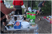 PC-7(534k)、16:36着 脇道を左折すると水溜りがあり、その脇をすり抜けていくと川には木の橋が。 落ちないように渡った湖(Onega)のほとりにスタッフがいて、飯ごうを火にかけ、ちょっとしたキャンプ。 軽く食事をいただき、もと来た道(橋を渡り、水溜りを抜け)を戻る。 今泉さんは先に行っているようでここには既にいなかった。 PC-8(633k)、23:04着 ここは折り返しポイントで、途中今泉さんとすれ違う(途中パンクした事もあり3時間程の差か)。PC-7のOnega湖の反対側に来たようで、ここも湖畔のキャンプという感じでした。 テントで30分ほど横になるが眠れず先に進むことにする。とにかく白夜なので時間の感覚がない。ライトもいらないので電池もGPS以外は減らない。 折り返しポイントまでは上り基調でかなりの勾配もあり、何度か押して歩く事に。折り返しポイント付近でルートを外れていることに気づき引き返すが、向こうからロシア人が来る。 彼はこのままでいいと言うが、GPSは手前で左折している。しばらくやりとりしていた(彼はTELでも確認していた)が、はぐれるとわからなくなるので僕はGPSに従うことに。 しかしその道は砂場みたいな所でとても走れる状態じゃない(今泉さんはそれでも行ったらしい)。ロシア人はもう先に行っているが、何とかGPSをたよりにルートを捜しながら進む。 少し遠回りをしながらもルート(道も良くなった)に復帰することができた、先ほどのロシア人も遠くに見える。しかしここから猛烈な眠気に襲われ何度も道端に座り込む。 PC-9(735k)、08:17着 (7月8日) 日が昇るにつれ元気もでてなんとか到着。ここも学校みたいなところだった。トイレは仕切りはあるがドアがない(笑)。 食事をして、DBがあったので着替え、少し休んで出発、なにしろ時間がない。