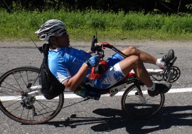翌日(7月5日)は二人とも二日酔い、僕はまだ朝飯が食べられたが、今泉さんは完璧にグロッキー。 ここでルートやPC等の説明(直前に変更)、ナンバープレートやキューシート(英語版)、ブルベカード、DB(2箇所)の袋、ジャージをもらう。 運んでもらったバイクをおのおのそこで組み立て、空のケースを預け宿へ帰る。みんな僕がリカンベントを組み立てるのを面白そうに見ていた。